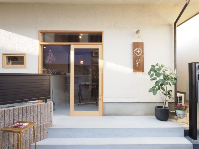 既存の建物は住宅として使われていたため、出入り口に段差がありました。敷地条件や既存建物の構造上、段差を完全に解消することは難しかったため、無理にフラットにするのではなく、高齢の方でも上がりやすい高さのステップを設けることで、できるだけ負担の少ないアプローチとしました。