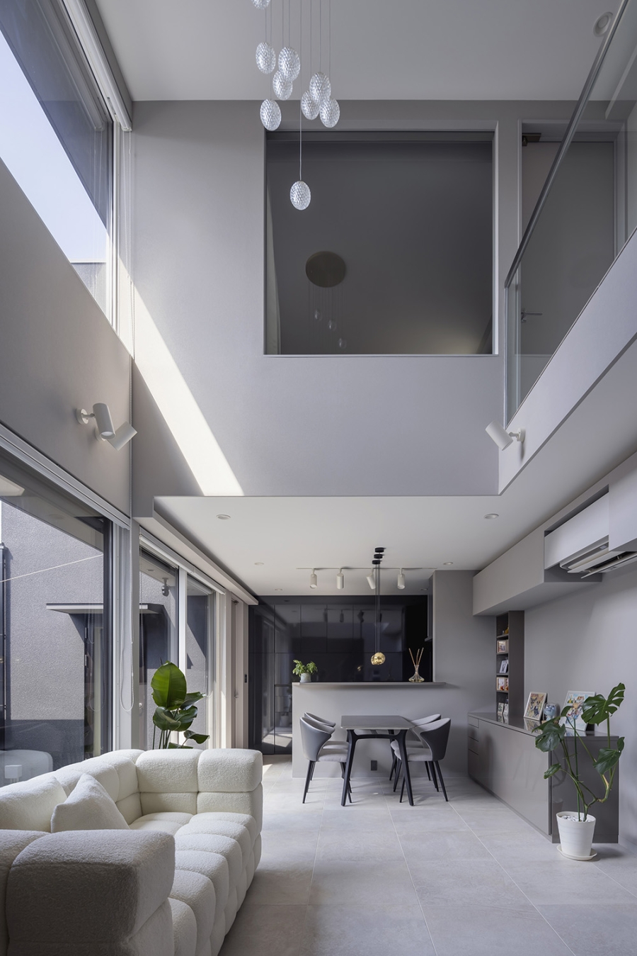 LDKの吹き抜け コートハウスは大開口でも外から見えない