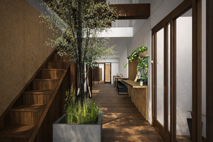 既存の木造住宅が持つ趣きを活かしながら、店舗としての機能を加えることで、新旧の魅力が調和する空間を目指しています。伏見稲荷を訪れる人々と地域をゆるやかにつなぐ、あたたかな場所となることを期待しています。