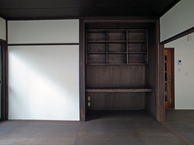 部屋の構成は変えず、古くなった設備の更新、以前の雰囲気を生かしながらの仕上げの変更を施した。それにより、快適で気持ちの良い、穏やかな空間に仕上げることができた。施主自ら塗った漆喰壁も、味があってこの場に良く馴染んでいる。