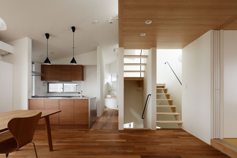 内装は白の漆喰と無垢の床でナチュラルで優しい空間に。