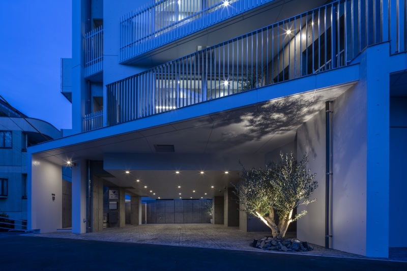 あらゆるところから、川土手の遊歩道の木々がちらちらと見え隠れし、敷地の前のある桜の木が春には目を楽しませてくれることだろう。