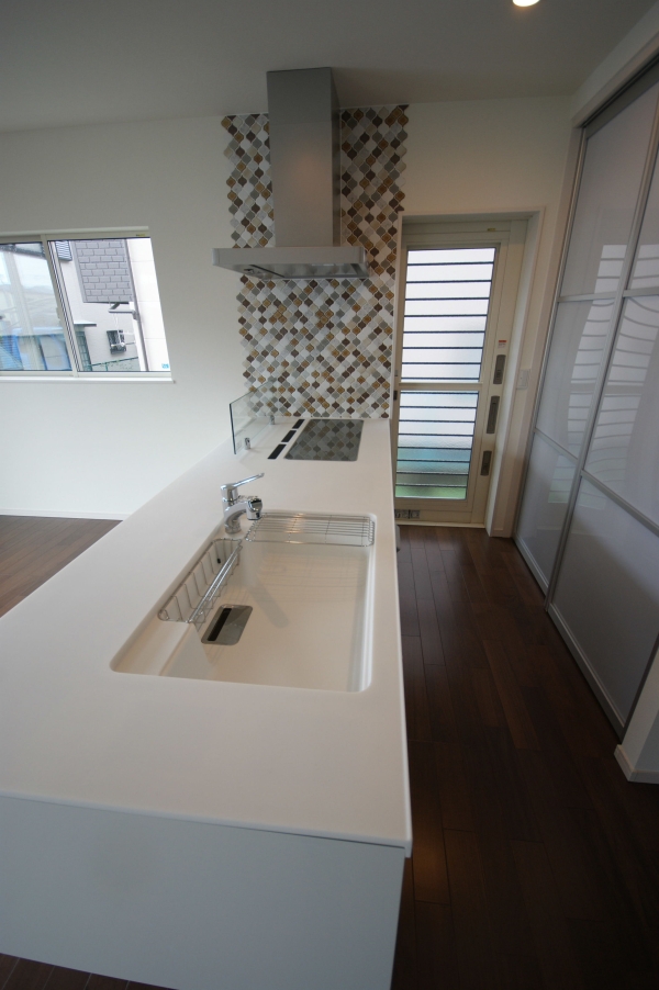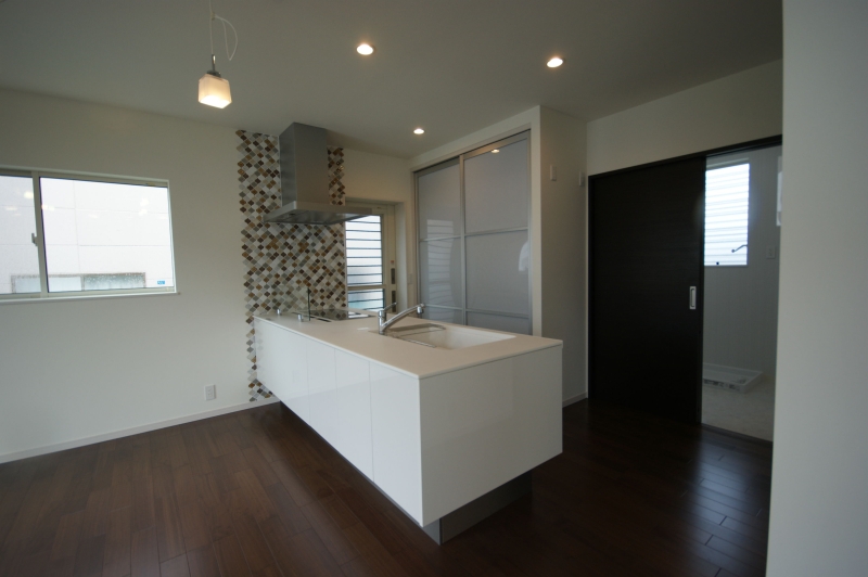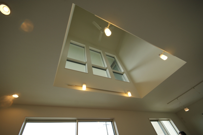 大きな吹き抜けのあるモダンな家 リビングの中央に配置した吹抜けが解放的で明るい空間を作り出します。 SHEaPで設計する住まいは、省エネに配慮した造りとなっていますので、吹抜けがあっても冬でも安心です。 完成後、真冬に訪問しても、想像以上に暖かいと言っていただくことがほとんどです。
