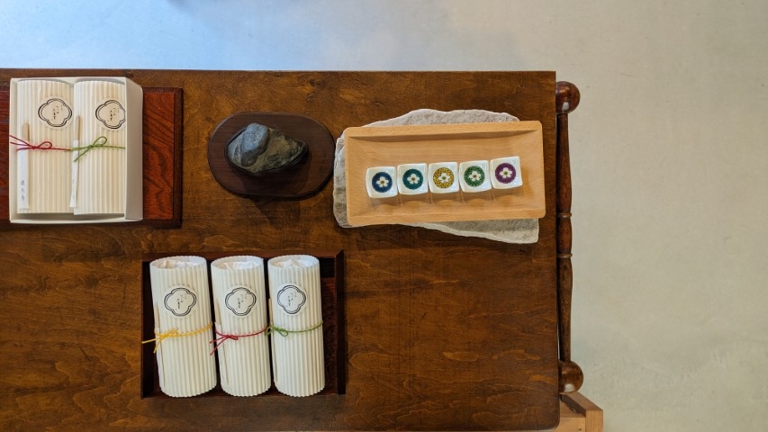 デザインの出発点となったのは、この店の象徴でもある「源氏巻」です。自然素材のやわらかな色合いと、オーナーがこのお菓子について情熱的に語る姿から、多くのインスピレーションを得ました。