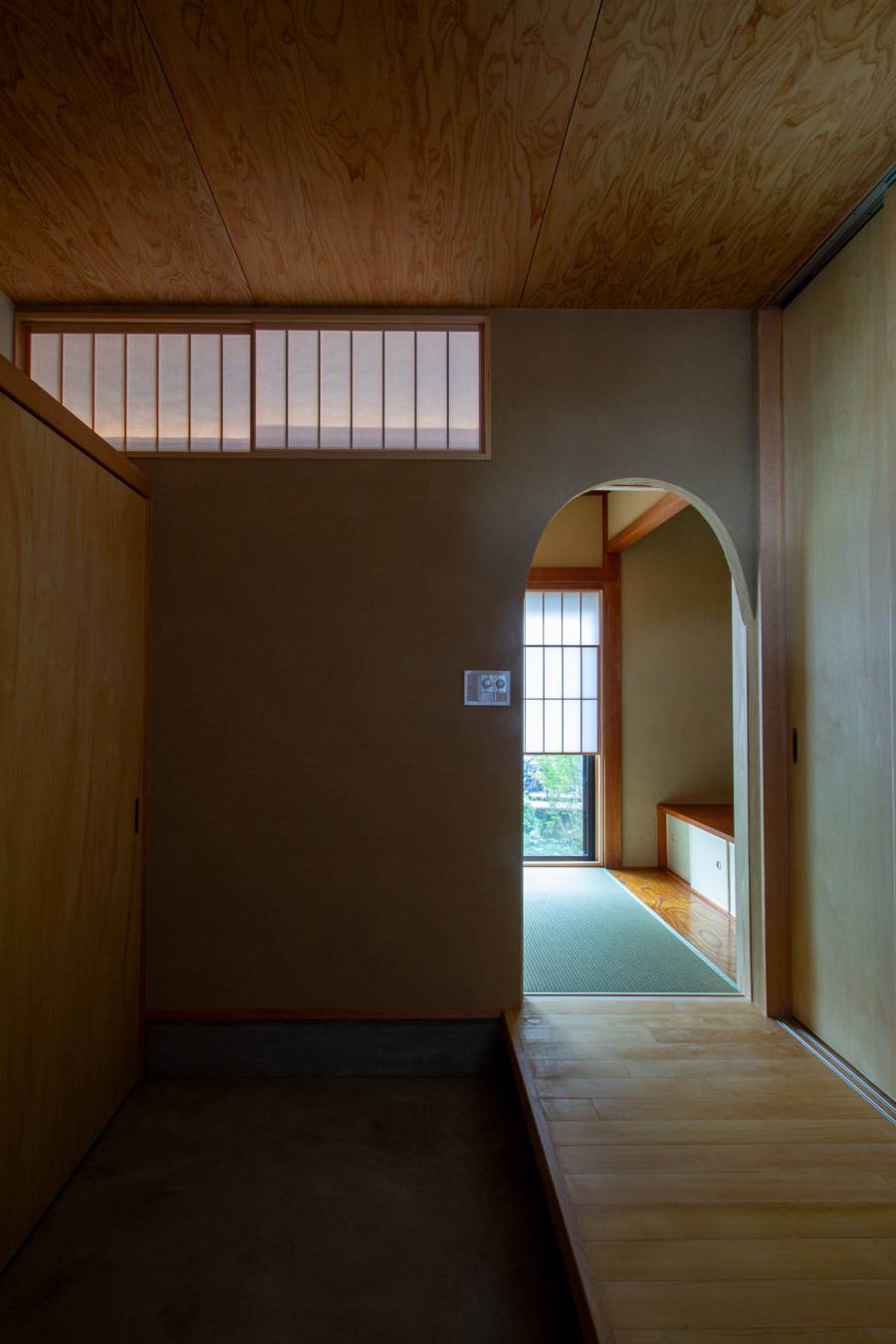工事前の調整段階で大きく変更したのですが、6畳の和室を3畳+床の間の和室に減築。その分、土間スペースを大きくし、自転車がおけたり、ちょっとしたDIY的な作業が出来る場所にしています。小さくした和室は小間のお茶室の様に、その小ささがすごく居心地よい場所になりました。