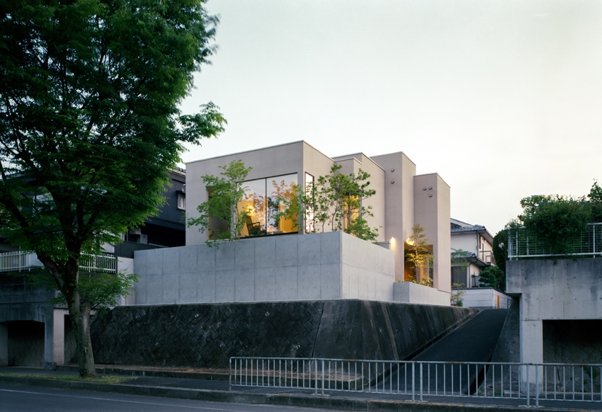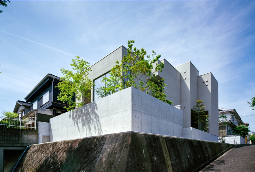 下がった部分に対しては、RCの塀を立て、目隠しと植栽の背景を兼ねています。