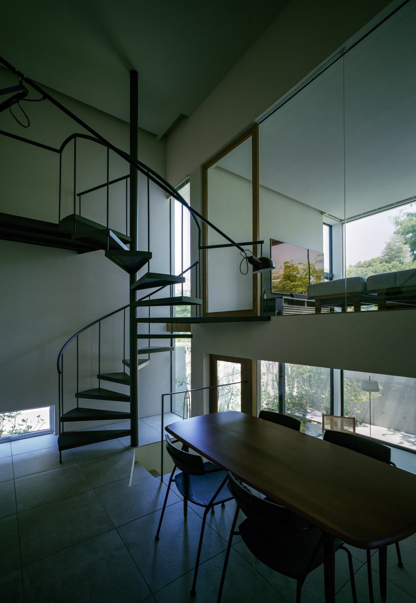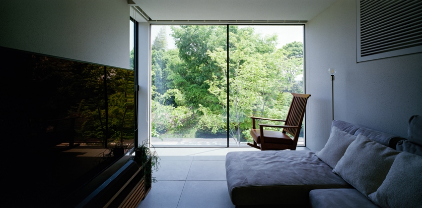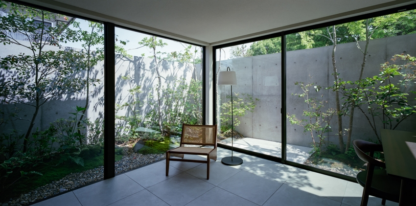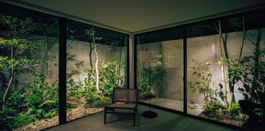 スリット窓から植栽が見えるなど、