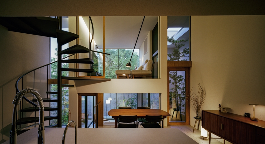 入り込むと、だんだんと開けていくようなプランにしました。