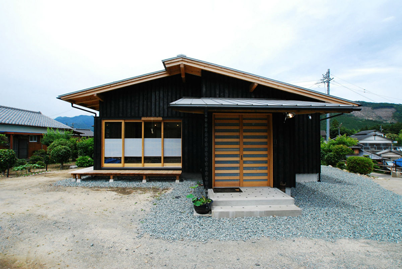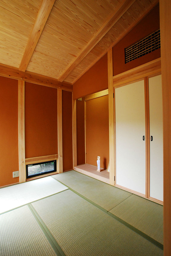 伝統的構法による「三重の木」の木組み土壁の平屋の家。