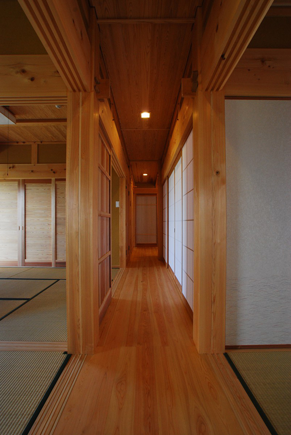 実りから得られる食を大切にする、大家族の住まい。 辺りは田園広がるのどかな地域、長年住まわれた母屋の建替えです。 この地方の慣習的な間取り”田の字”を基本に、木組みを追求し進化させ、木の文化を復活させます。